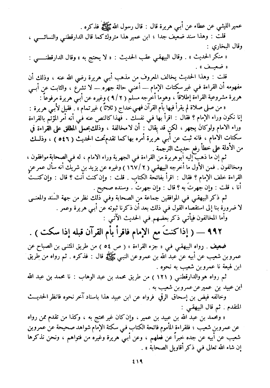 992 - " إذا كنت مع الإمام فاقرأ بأم القرآن قبله إذا سكت ".