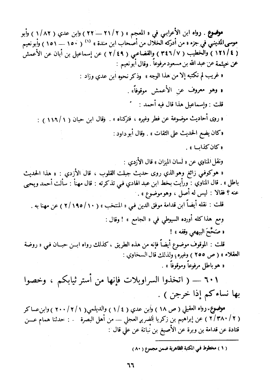 601 - " اتخذوا السراويلات فإنه من أستر ثيابكم، وخصوا بها نساءكم إذا خرجن ".