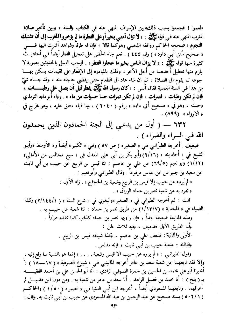632 - " أول من يدعى إلى الجنة الحمادون الذين يحمدون الله في السراء والضراء ".