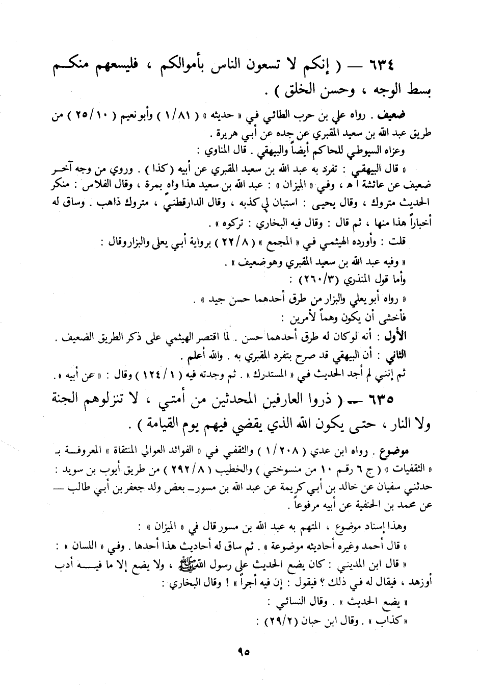 635 - " ذروا العارفين المحدثين من أمتي، لا تنزلوهم الجنة ولا النار، حتى يكون الله الذي يقضي فيهم يوم القيامة ".