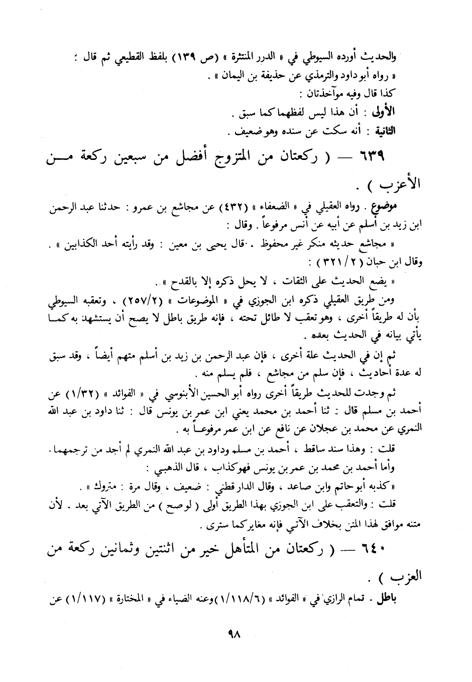 640 - " ركعتان من المتأهل خير من اثنتين وثمانين ركعة من العزب ".