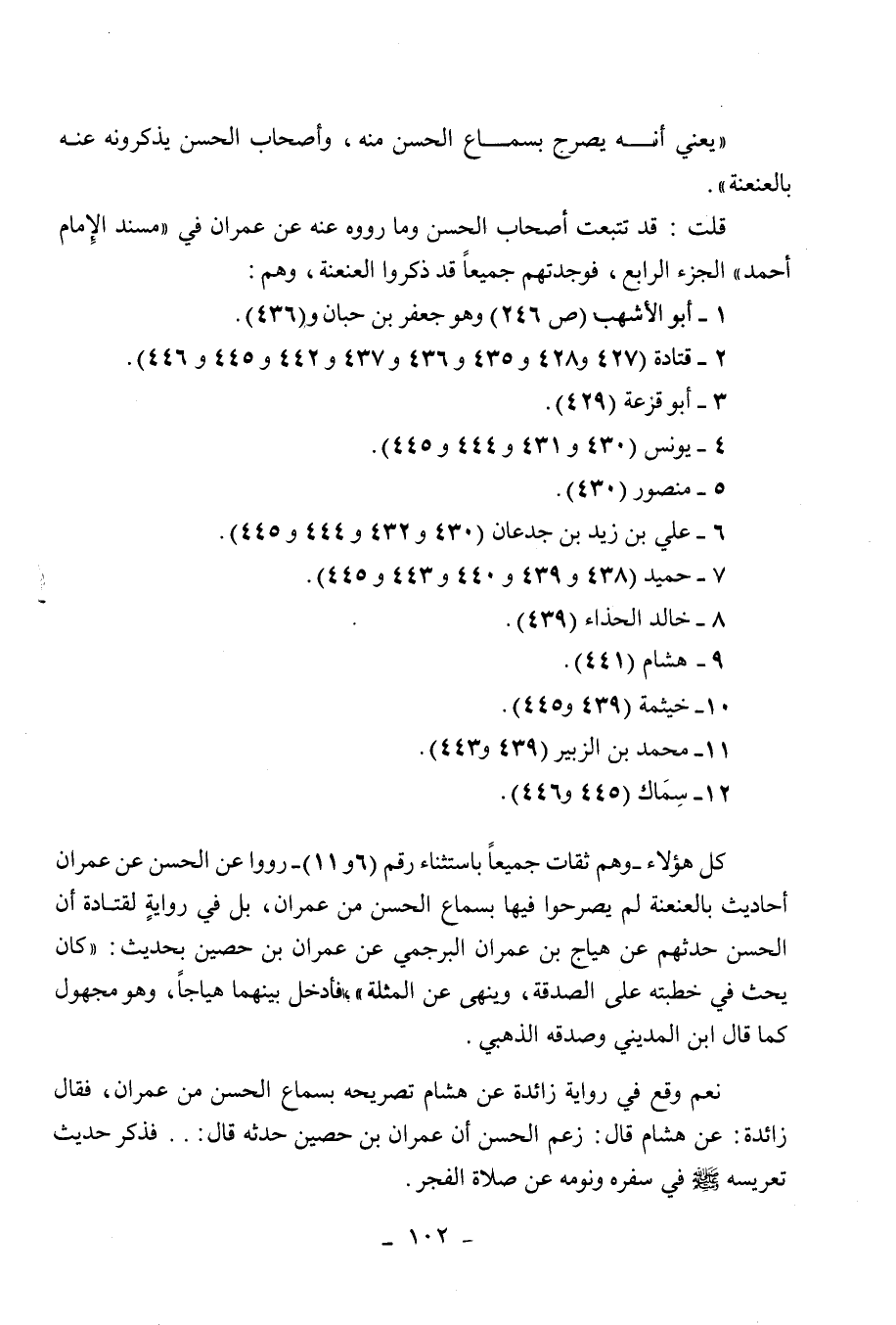 قلت: قد تتبعت أصحاب الحسن وما رووه عنه عن عمران في " مسند الإمام أحمد " الجزء الرابع، فوجدتهم جميعا قد ذكروا العنعنة، وهم:
