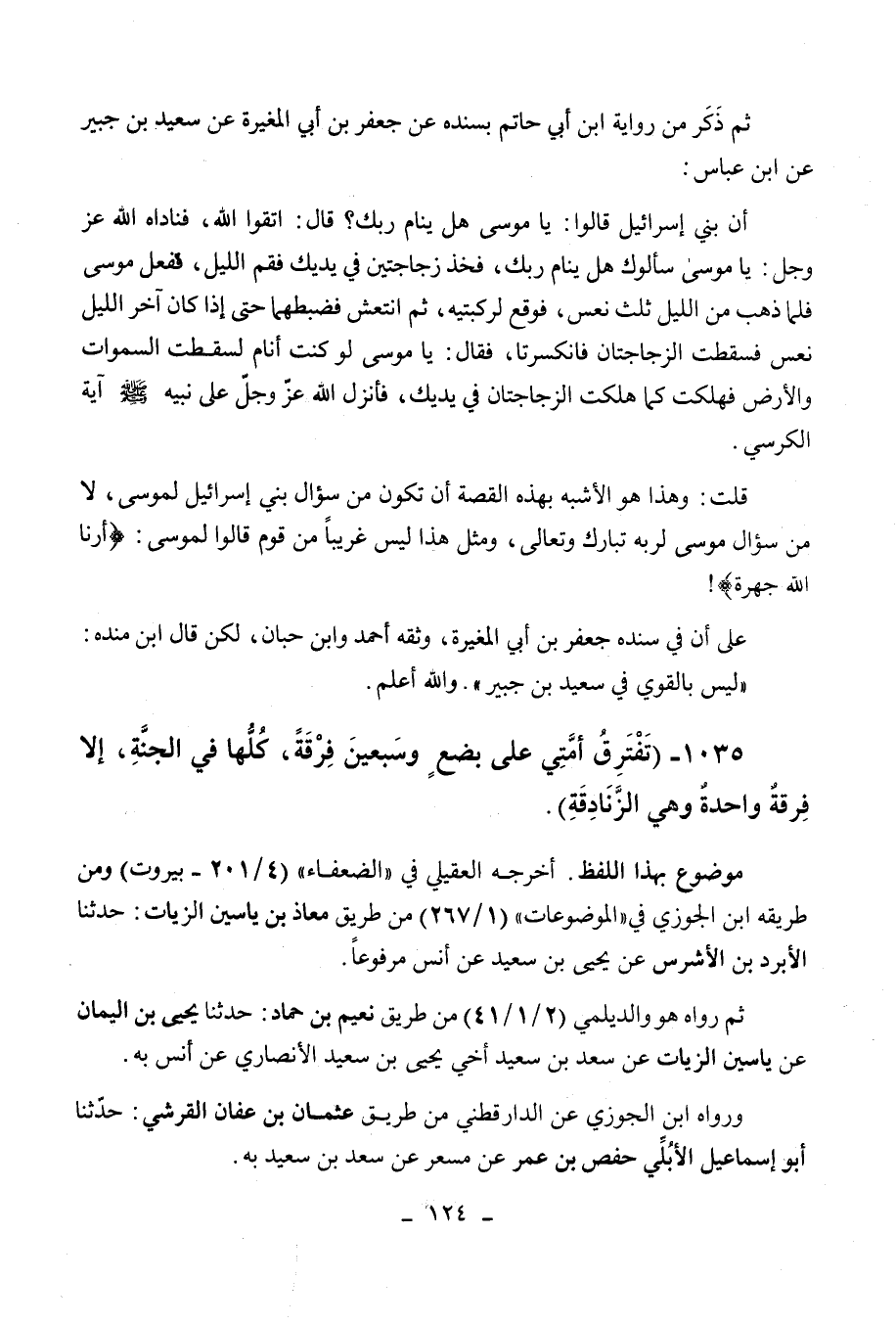 1035 - " تفترق أمتى على بضع وسبعين فرقة، كلها في الجنة، إلا فرقة واحدة وهي الزنادقة ".