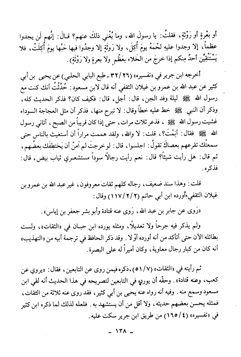 أخرجه ابن جرير في " تفسيره " (26/32 ـ طبع البابي الحلبي) عن يحيى بن أبي كثير عن عبد الله بن عمرو بن غيلان الثقفي أنه قال لابن مسعود: حدثت أنك كنت مع رسول الله صلى الله عليه وسلم ليلة وفد الجن، قال: أجل، قال: فكيف كان؟