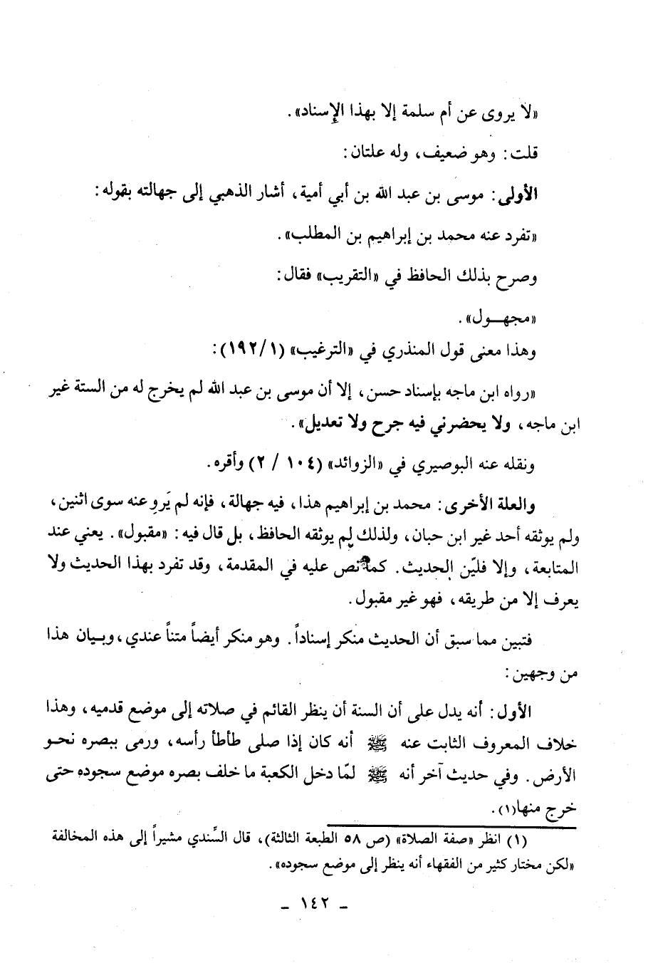 (1) انظر " صفة الصلاة " (ص 58 الطبعة الثالثة) ، قال السندي مشيرا إلى هذه المخالفة " لكن مختار كثير من الفقهاء أنه ينظر إلى موضع سجوده ". اهـ.