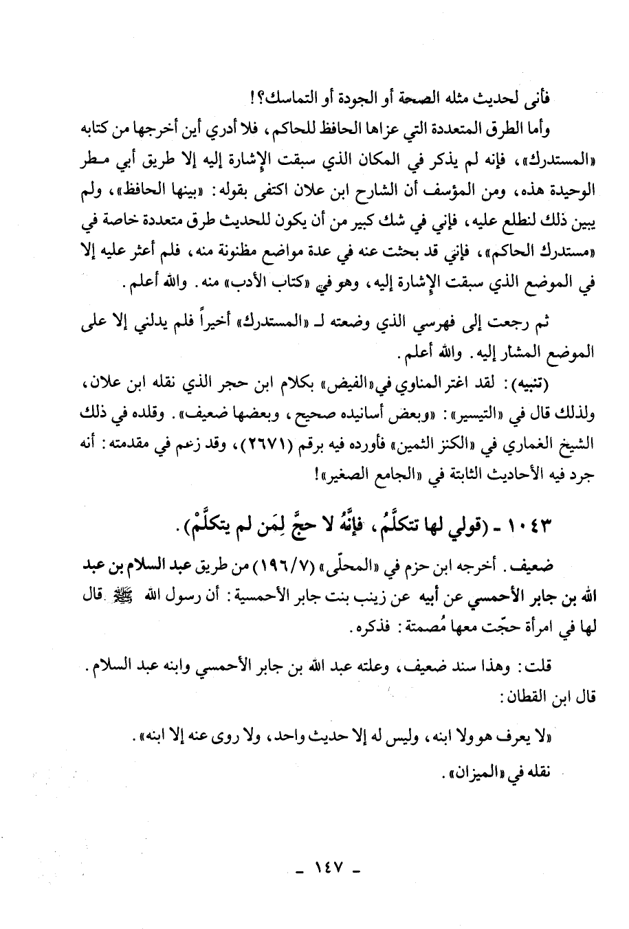 1043 - " قولي لها تتكلم، فإنه لا حج لمن لم يتكلم ".