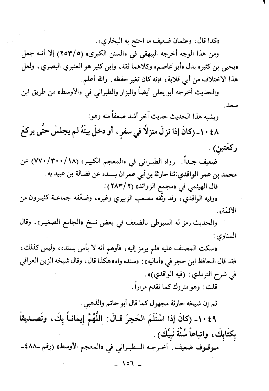 1048 - " كان إذا نزل منزلا في سفر، أودخل بيته لم يجلس حتى يركع ركعتين ".
