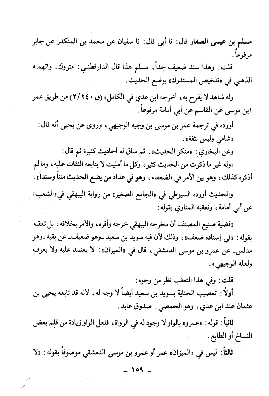ثالثا: ليس في " الميزان " عمر أوعمرو بن موسى الدمشقي موصوفا بقوله: لا