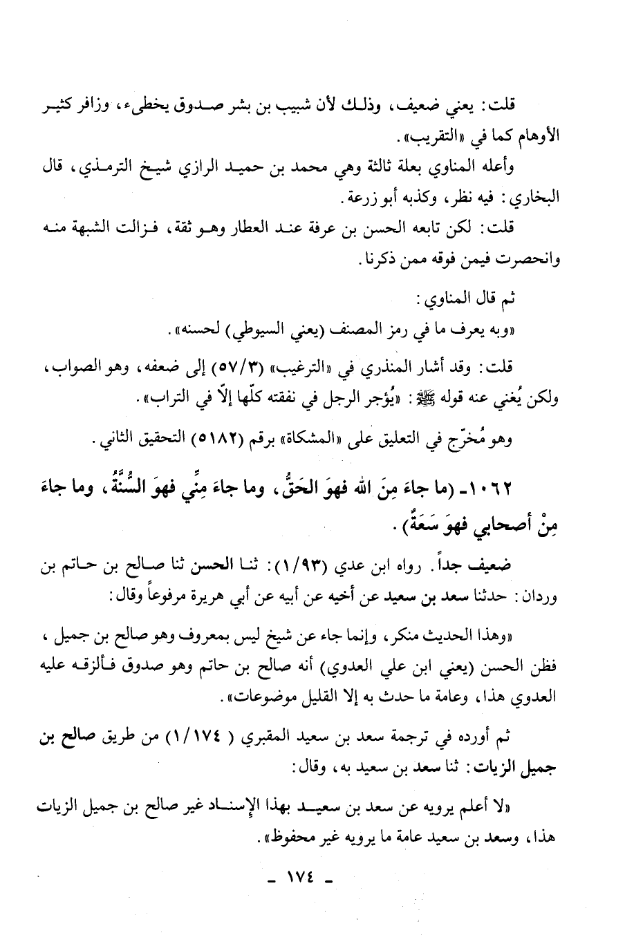 1062 - " ما جاء من الله فهو الحق، وما جاء مني فهو السنة، وما جاء من أصحابي فهو سعة ".