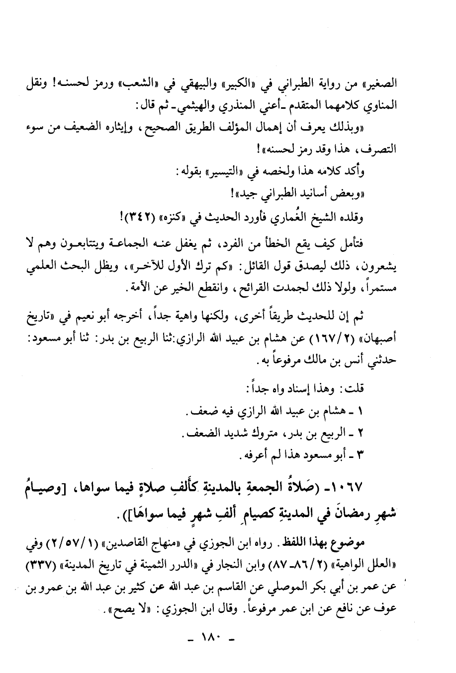 1067 - " صلاة الجمعة بالمدينة كألف صلاة فيما سواها، [وصيام شهر رمضان في المدينة كصيام ألف شهر فيما سواها] ".
