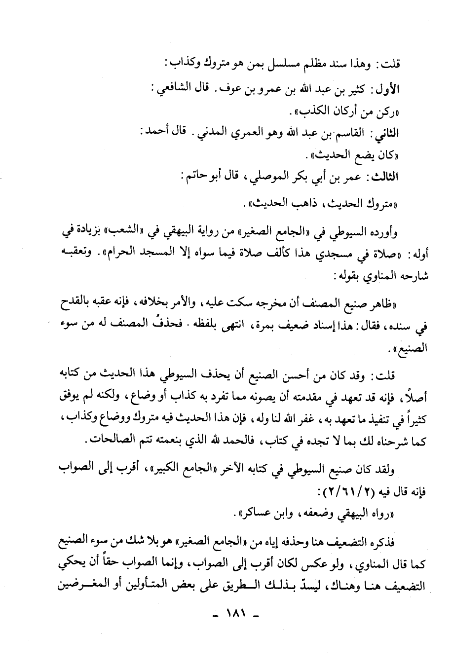 ولقد كان صنيع السيوطي في كتابه الآخر " الجامع الكبير "، أقرب إلى الصواب فإنه قال فيه (2/61/2) :