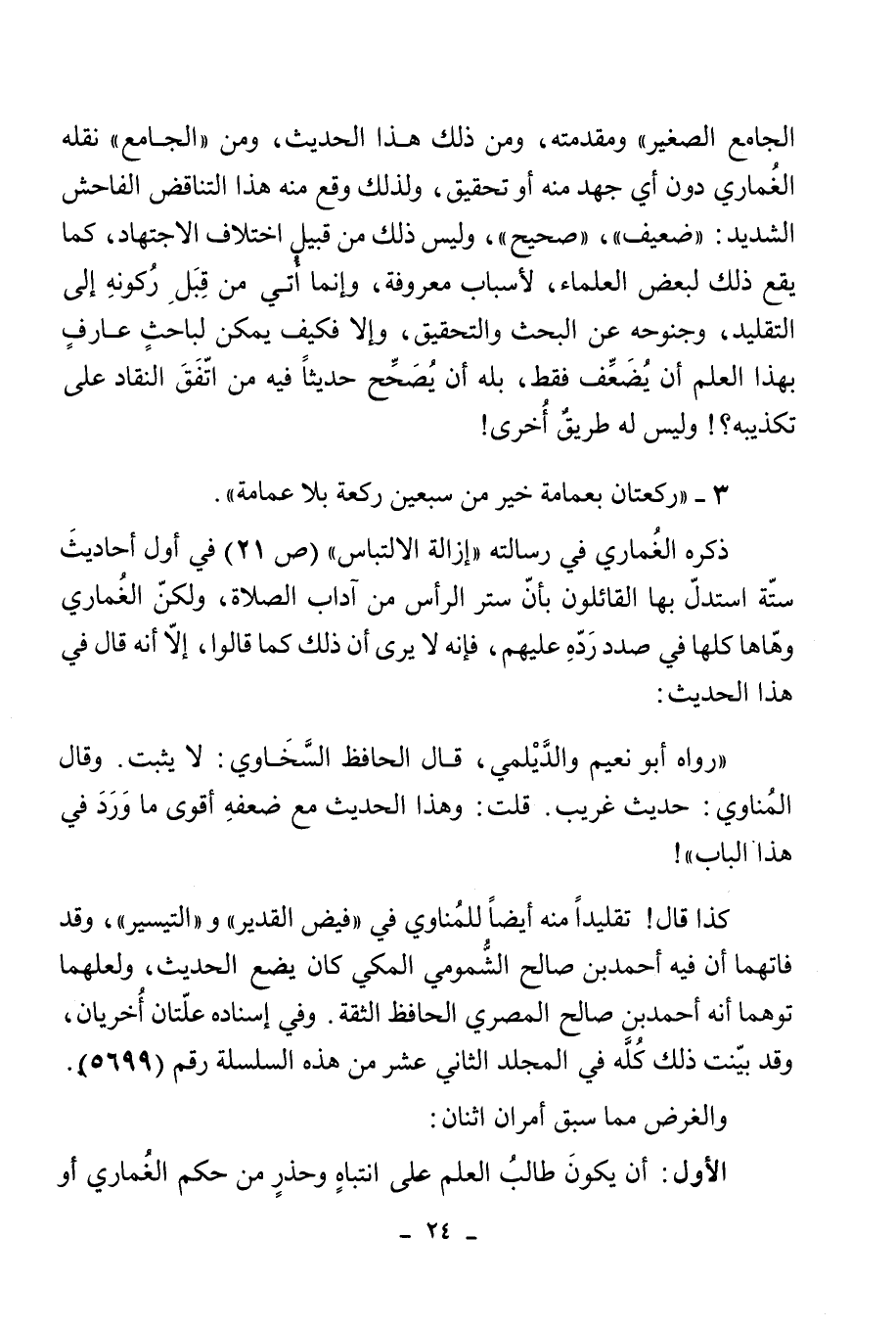 الأول: أن يكونَ طالبُ العلم على انتباهٍ وحذرٍ من حكم الغُماري أو