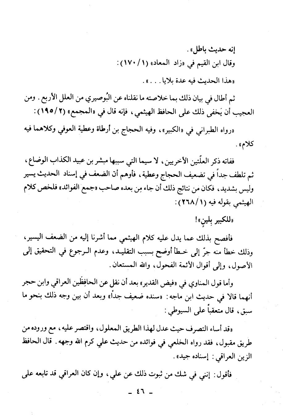 للكبير بلين!، فأفصح بذلك عما يدل عليه كلام الهيثمي مما أشرنا إليه من الضعف اليسير، وذلك خطأ منه جر إلى خطأ أوضح بسبب التقليد، وعدم الرجوع في التحقيق إلى الأصول، وإلى أقوال الأئمة الفحول، والله المستعان.