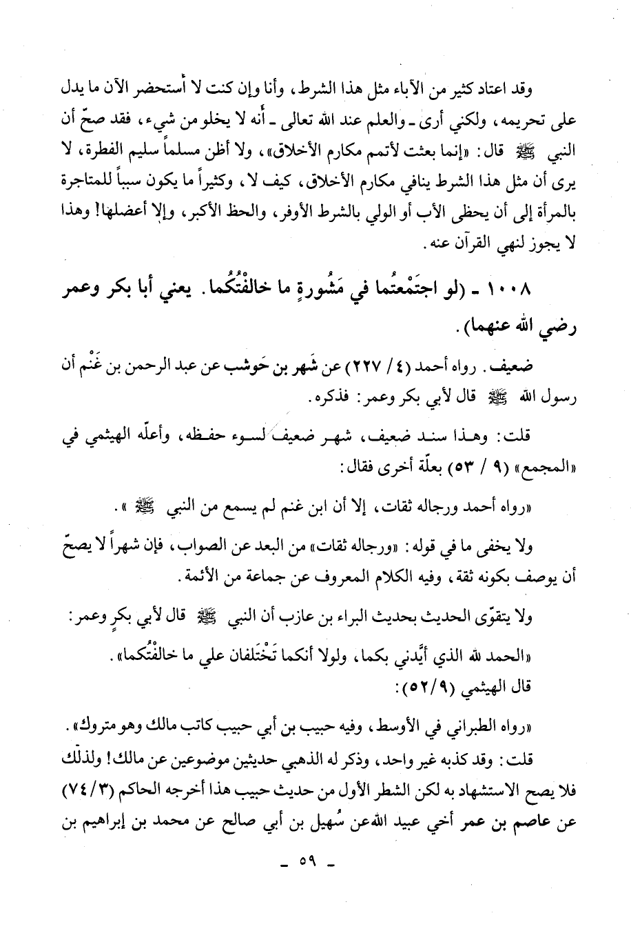 1008 - " لواجتمعتما في مشورة ما خالفتكما، يعني أبا بكر وعمر رضي الله عنهما ".