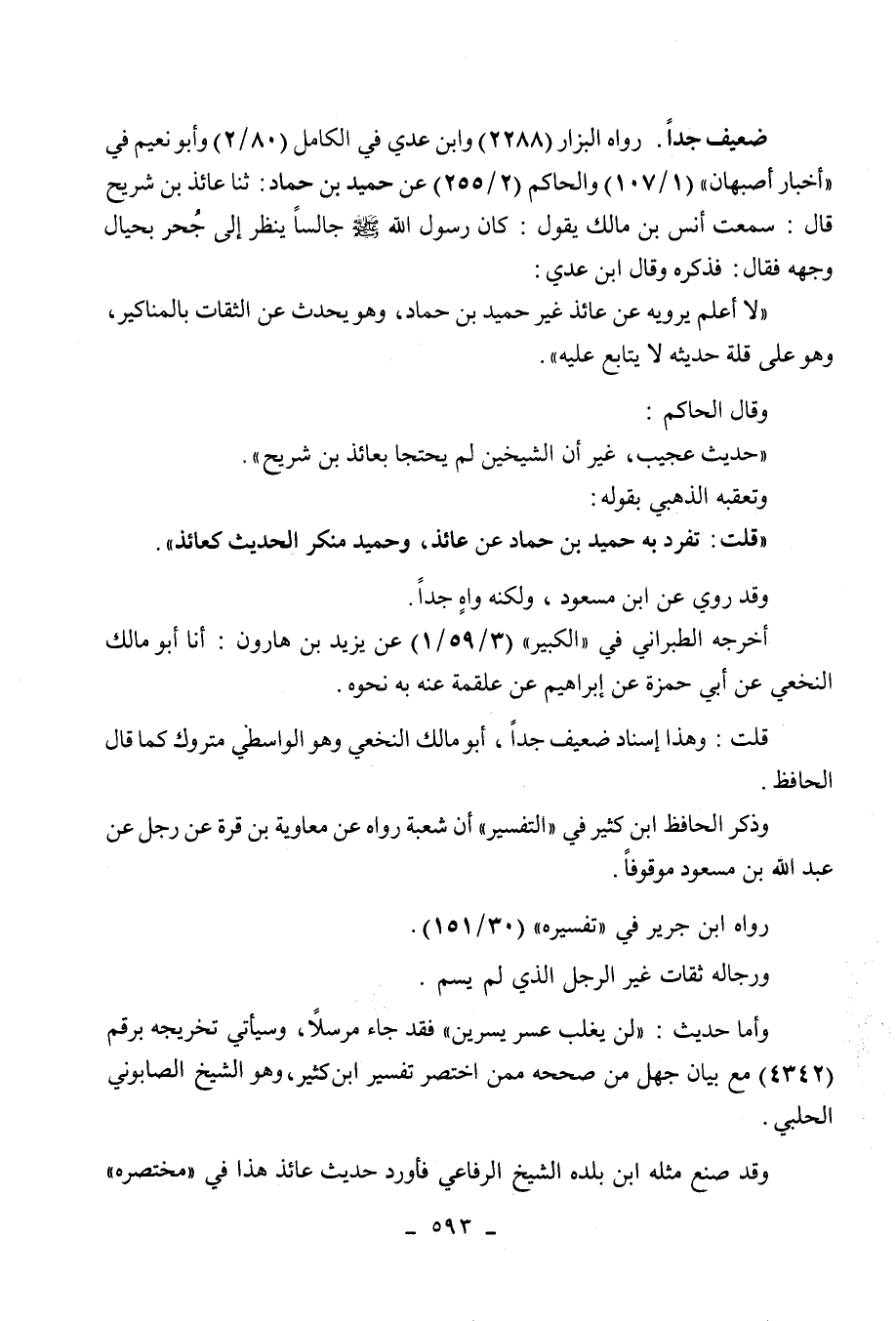 وأما حديث: " لن يغلب عسر يسرين " فقد جاء مرسلا، وسيأتي تخريجه برقم (4342) مع بيان جهل من صححه ممن اختصر تفسير ابن كثير، وهو الشيخ الصابوني