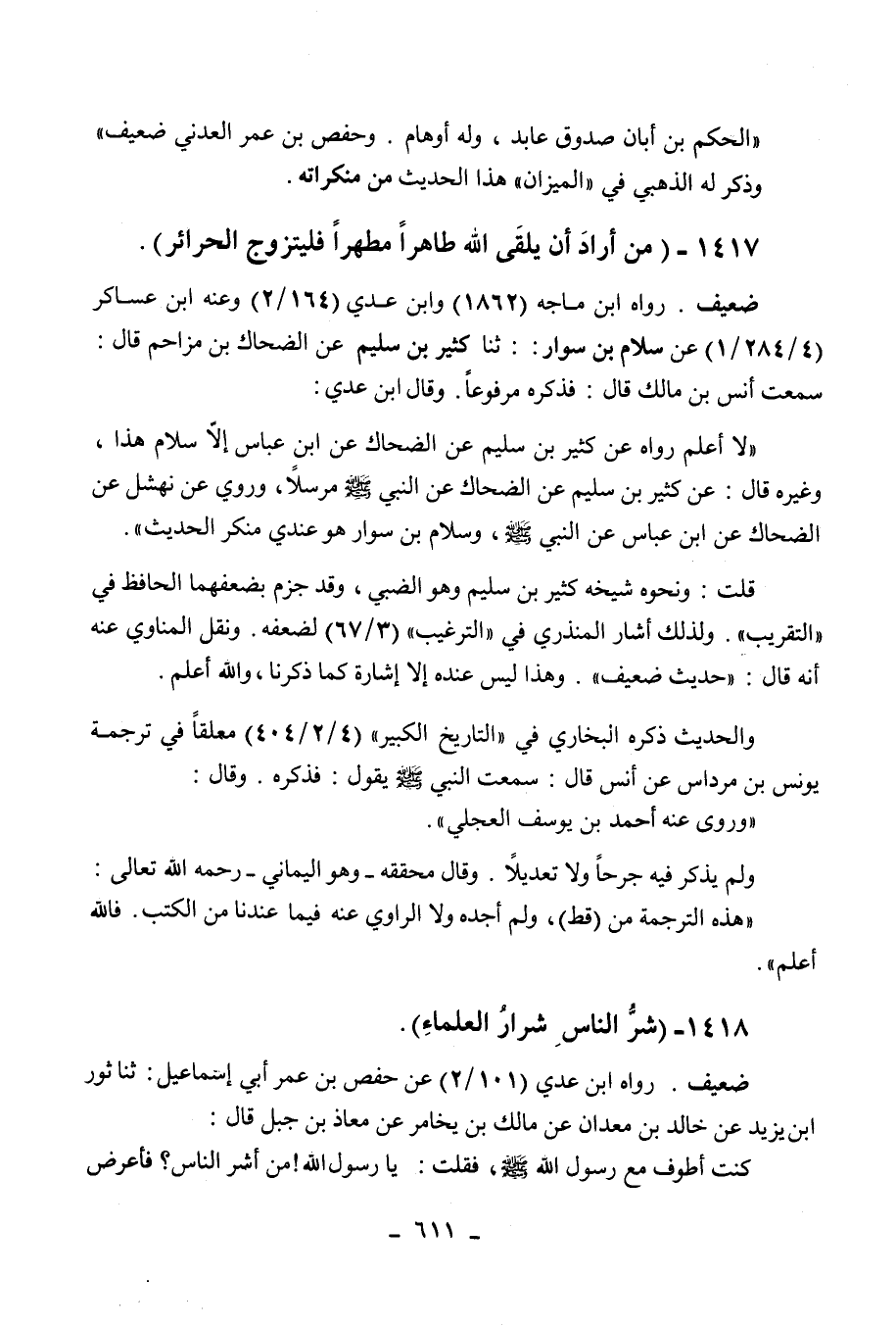 1417 - " من أراد أن يلقى الله طاهرا مطهرا فليتزوج الحرائر ".
