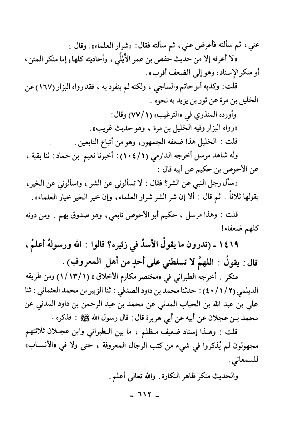 قلت: الخليل هذا ضعفه الجمهور، وهو من أتباع التابعين.