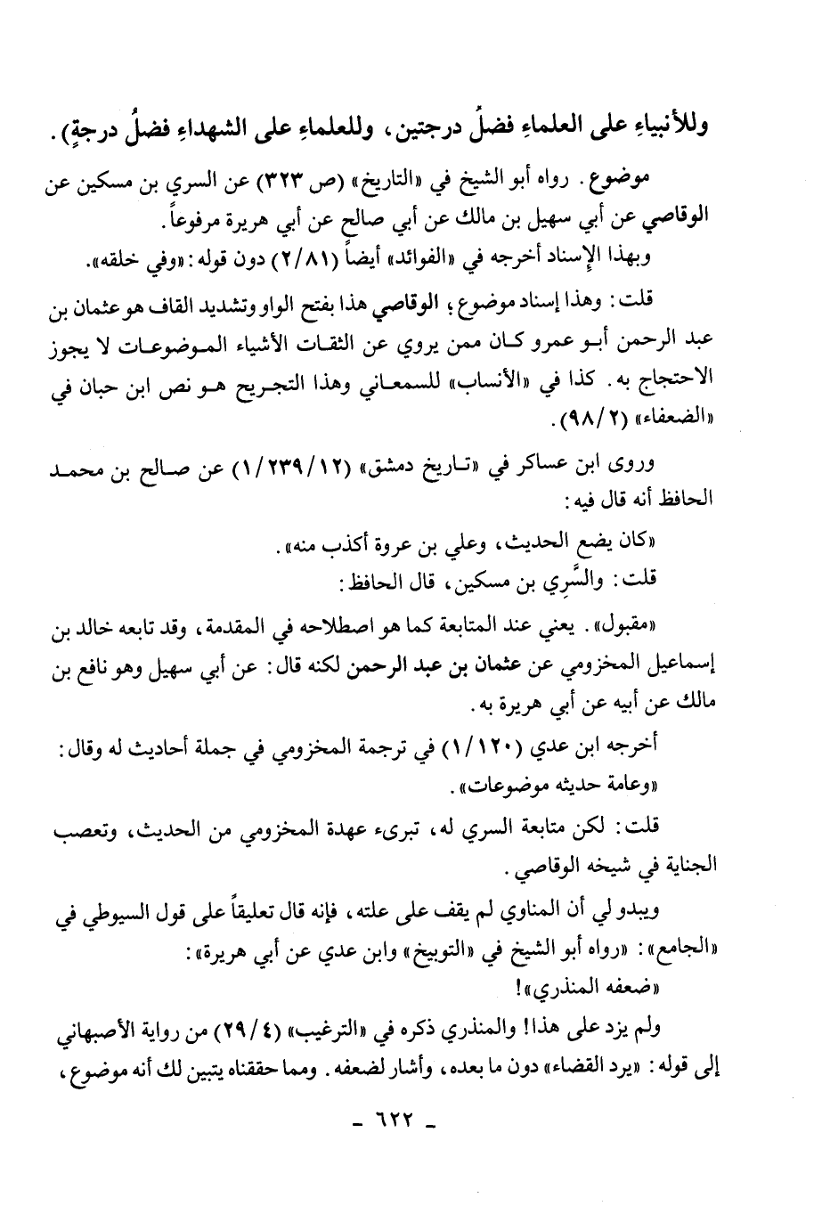 قلت: لكن متابعة السري له، تبرئ عهدة المخزومي من الحديث، وتعصب الجناية