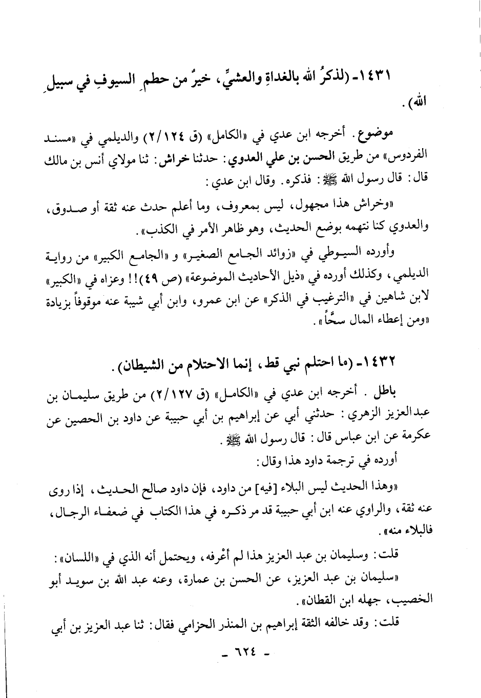 1432 - " ما احتلم نبي قط، إنما الاحتلام من الشيطان ".