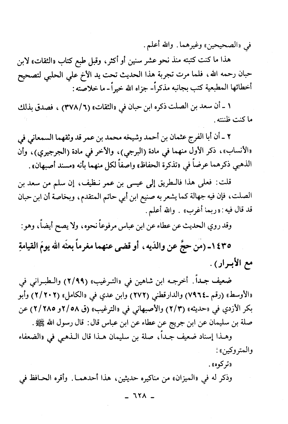 حبان رحمه الله، فلما مرت تجربة هذا الحديث تحت يد الأخ علي الحلبي لتصحيح