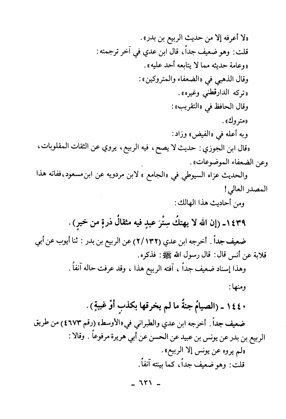 1440 - " الصيام جنة ما لم يخرقها بكذب أوغيبة ".