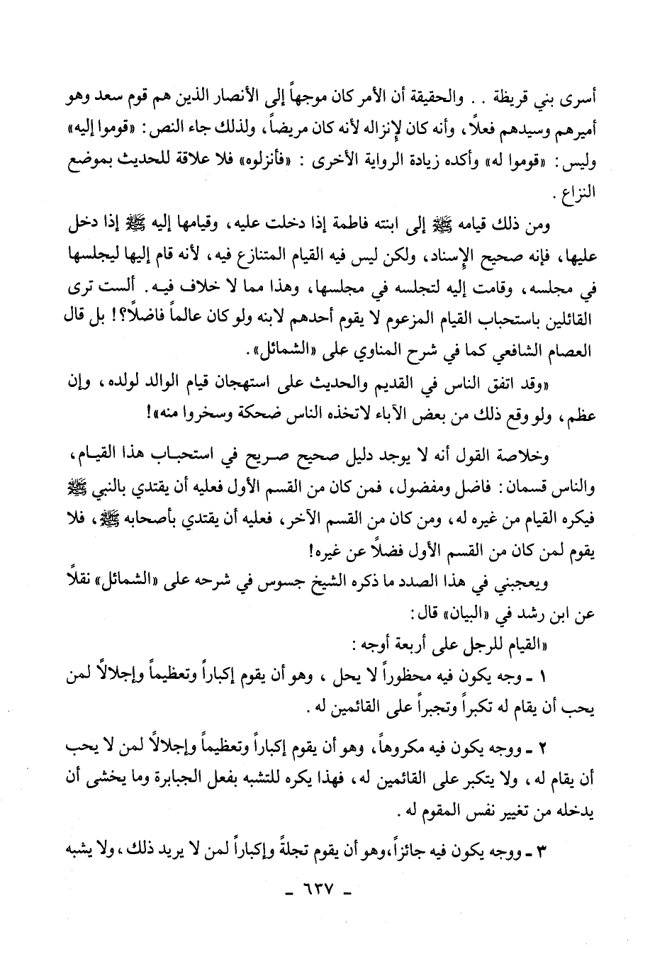 3 - ووجه يكون فيه جائزا، وهو أن يقوم تجلة وإكبارا لمن لا يريد ذلك،