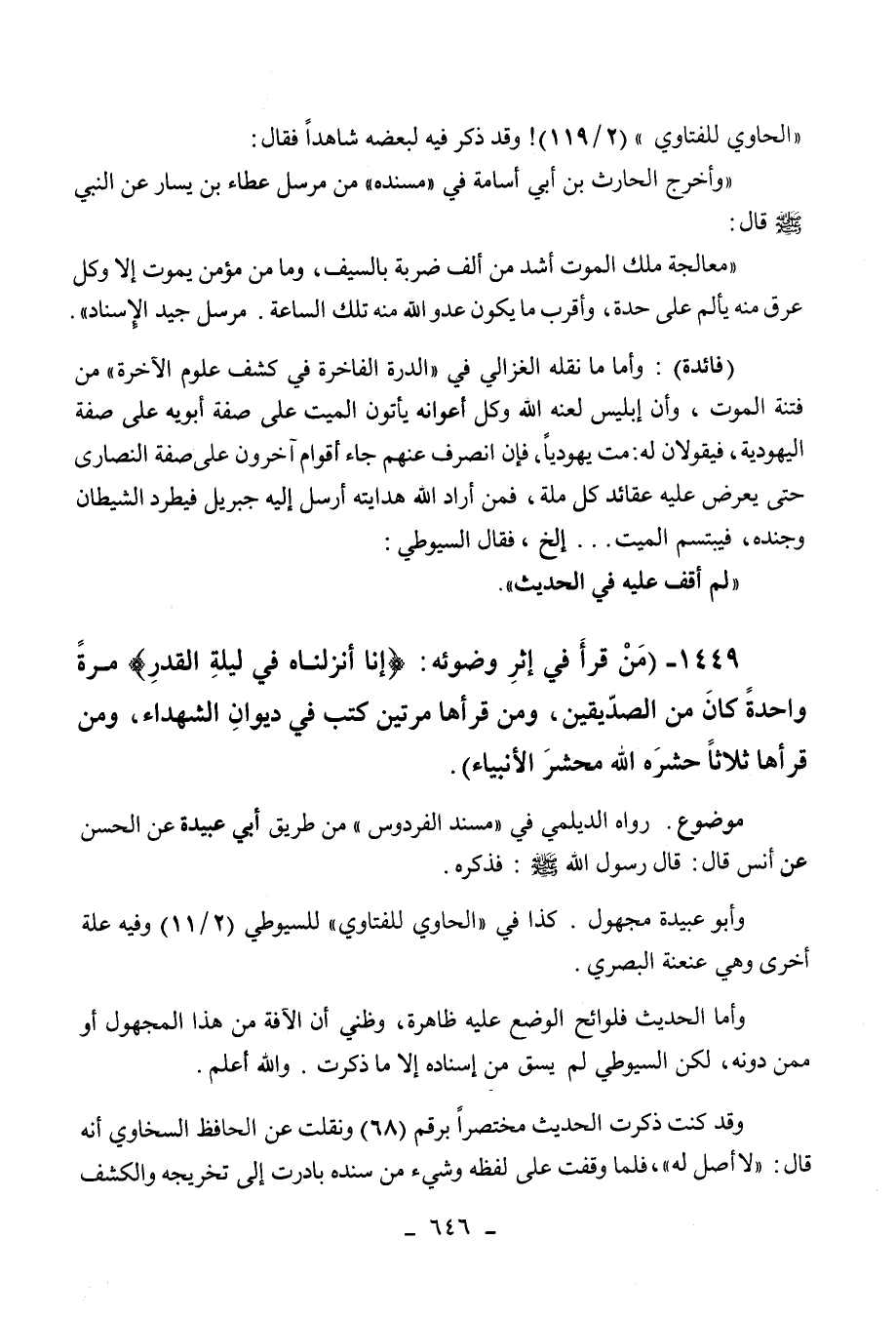1449 - " من قرأ في إثر وضوئه: " إنا أنزلناه في ليلة القدر " مرة واحدة كان من