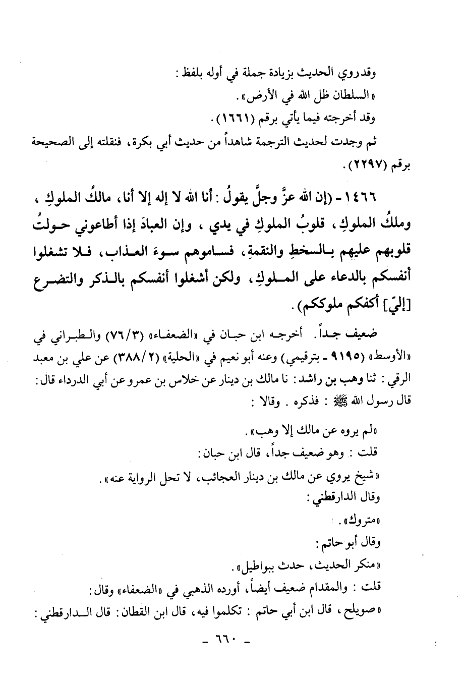 1466 - " إن الله عز وجل يقول: أنا الله لا إله إلا أنا، مالك الملوك، وملك الملوك