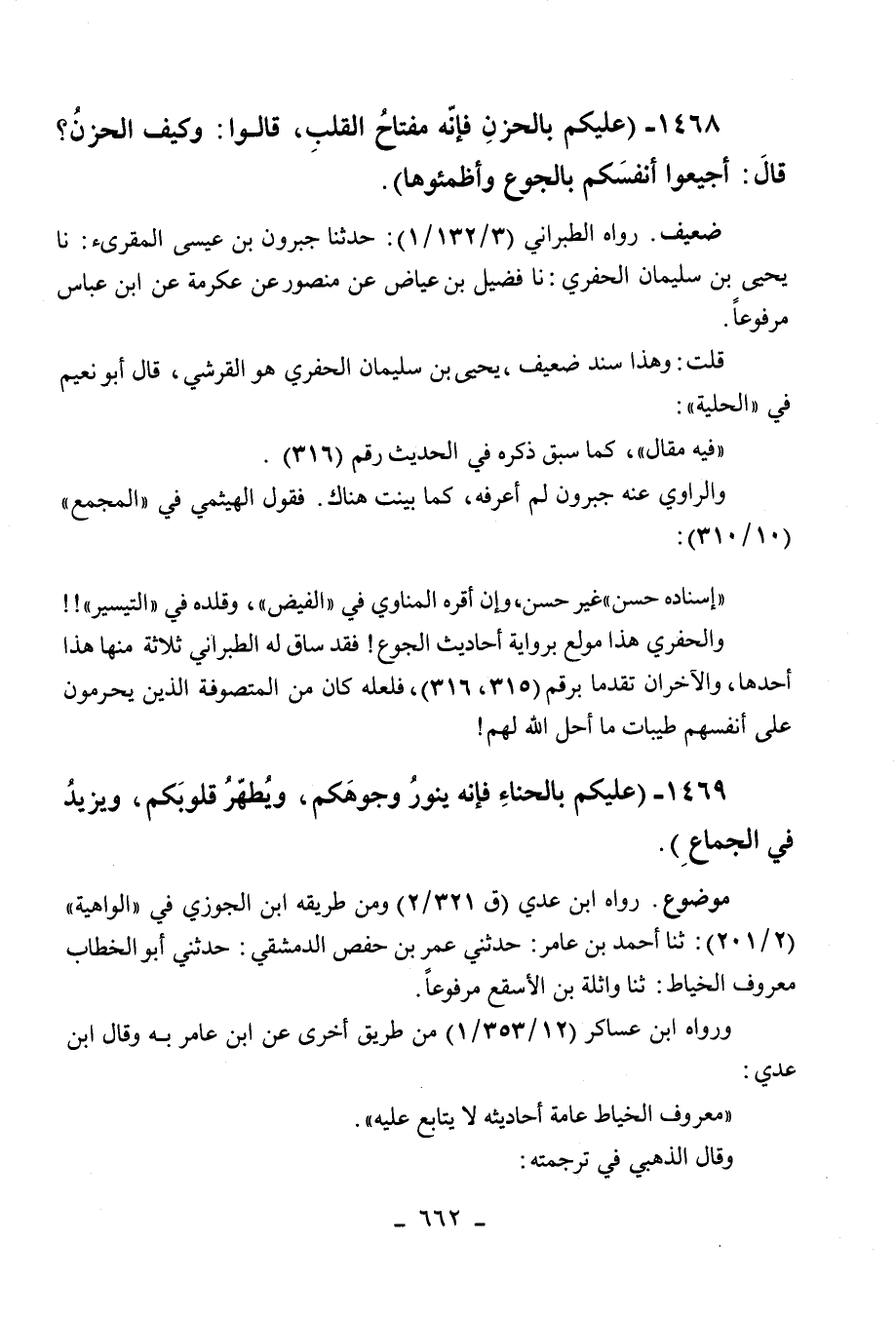 1469 - " عليكم بالحناء فإنه ينور وجوهكم، ويطهر قلوبكم، ويزيد في الجماع ".