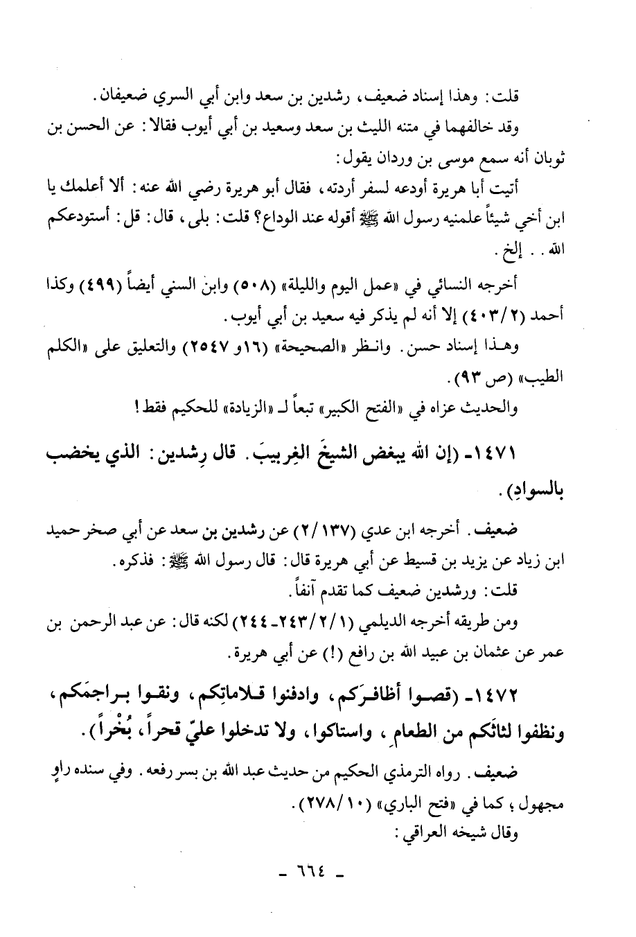 1471 - " إن الله يبغض الشيخ الغربيب. قال رشدين: الذي يخضب بالسواد ".