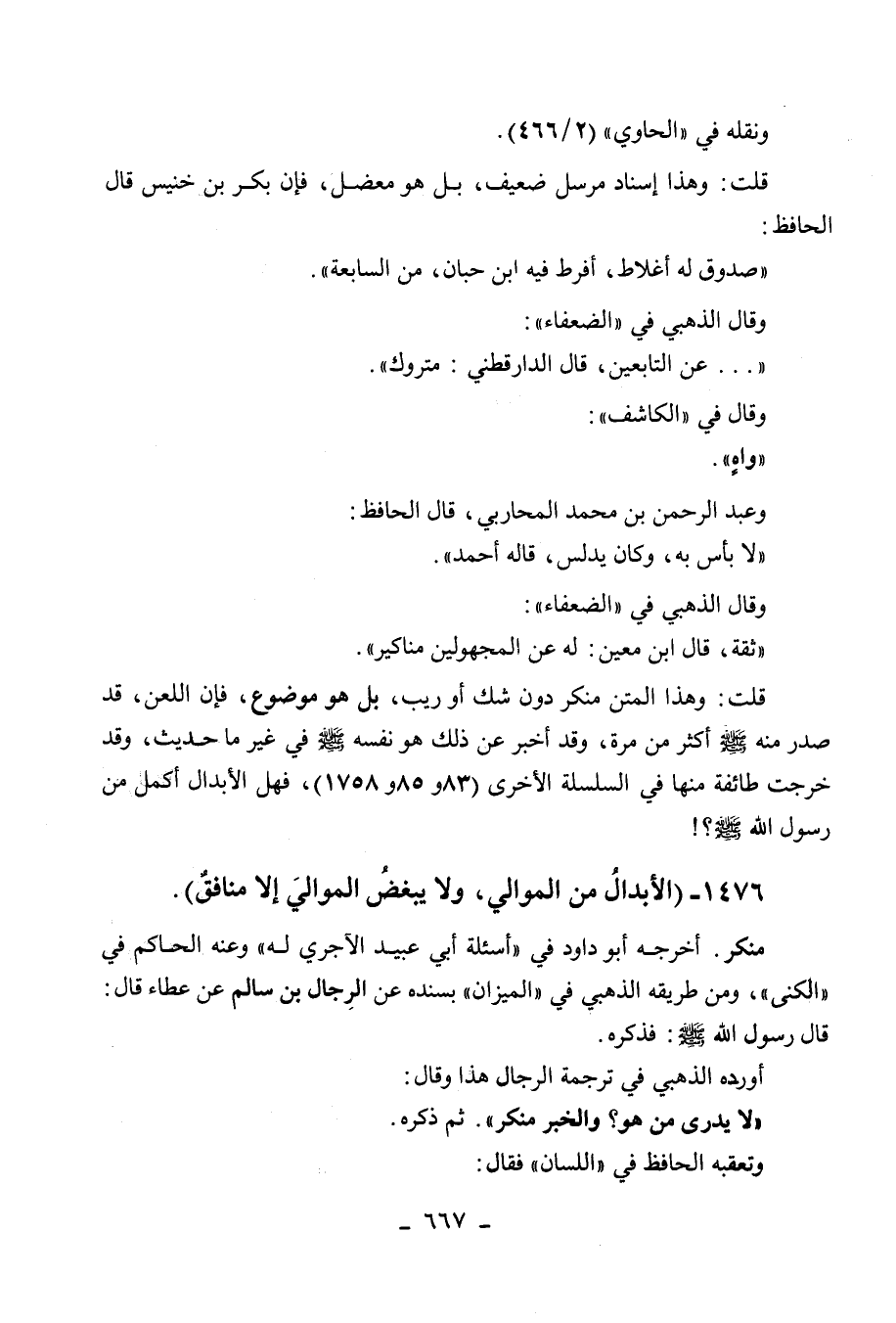 1476 - " الأبدال من الموالي، ولا يبغض الموالي إلا منافق ".