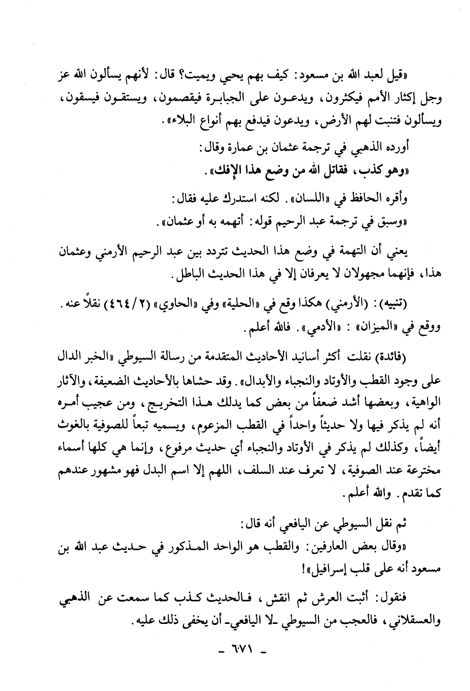 ومن عجيب أمره أنه لم يذكر فيها ولا حديثا واحدا في القطب المزعوم، ويسميه