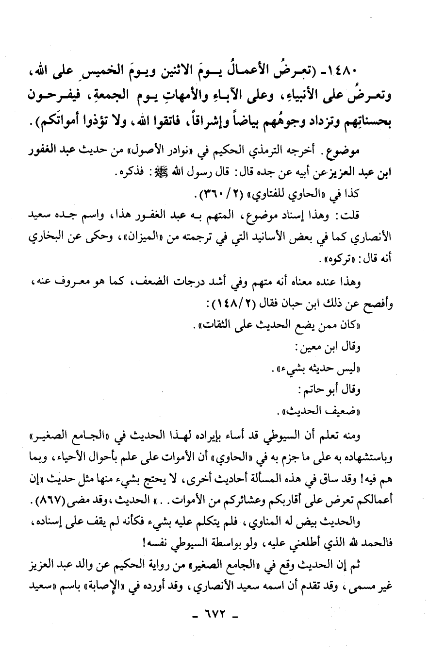 1480 - " تعرض الأعمال يوم الاثنين ويوم الخميس على الله، وتعرض على الأنبياء،