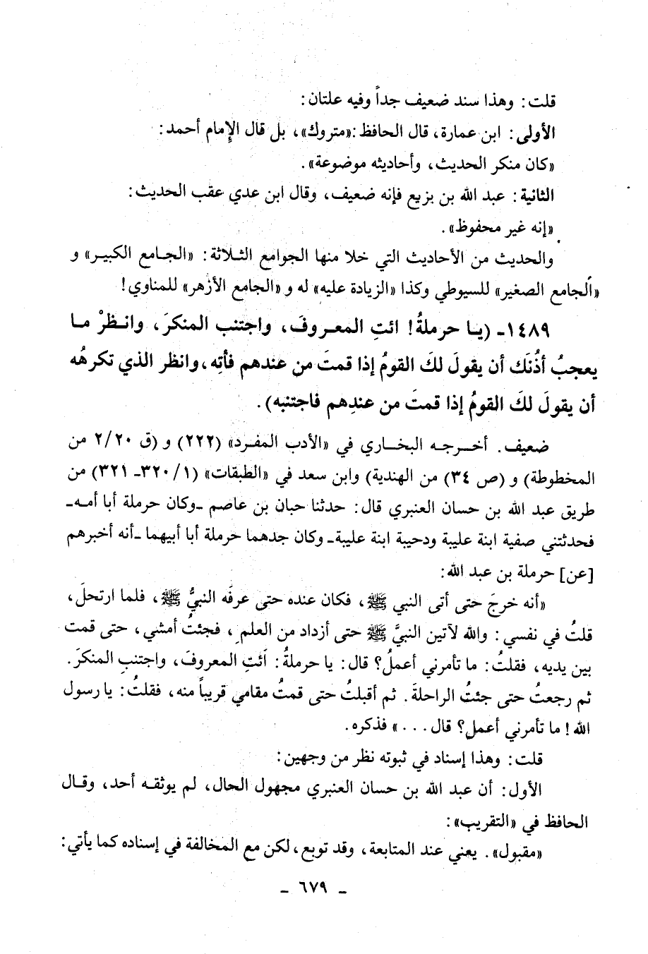 1489 - " يا حرملة! ائت المعروف، واجتنب المنكر، وانظر ما يعجب أذنك أن يقول لك