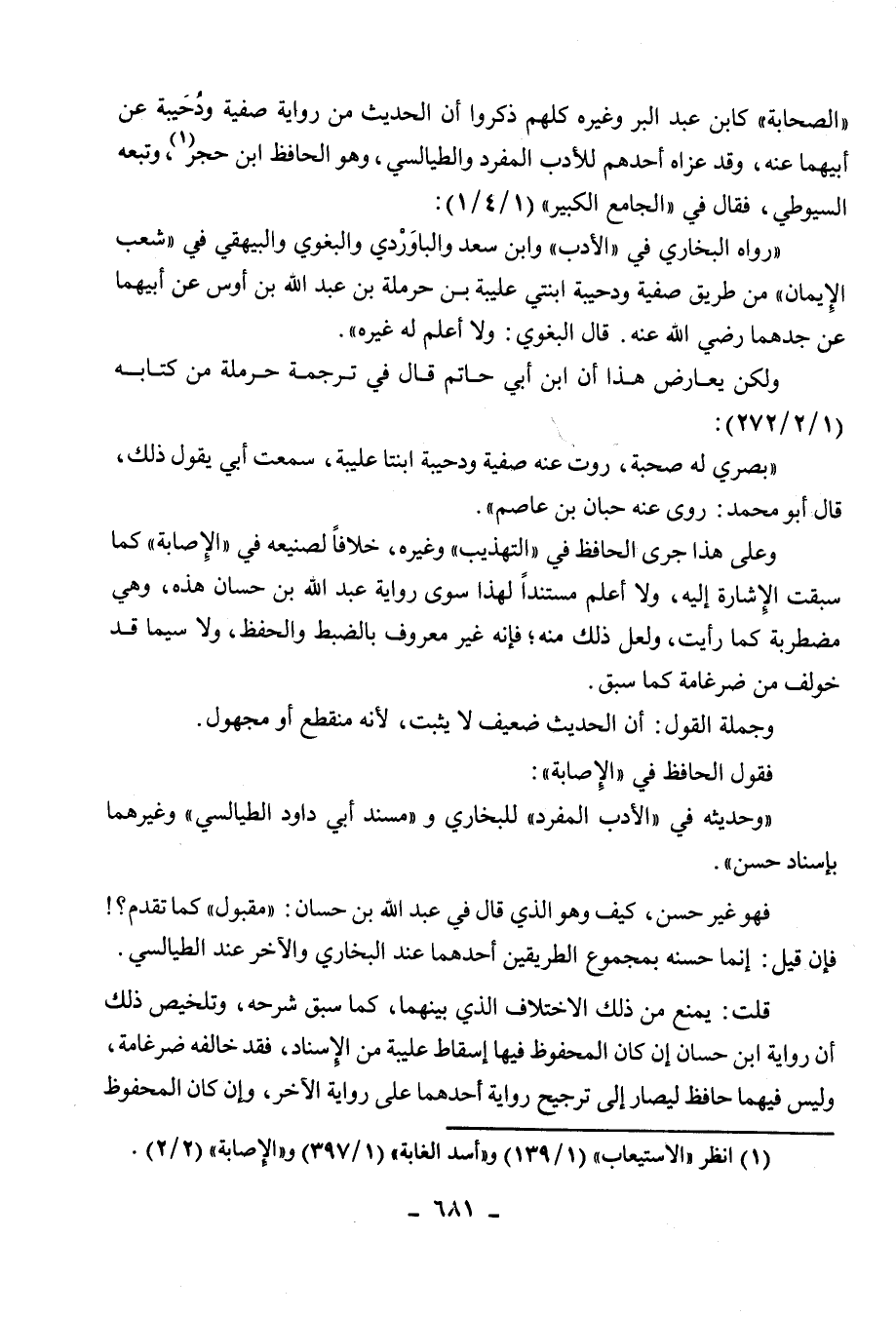 شعب الإيمان " من طريق صفية ودحيبة ابنتي عليبة بن حرملة بن عبد الله بن أوس