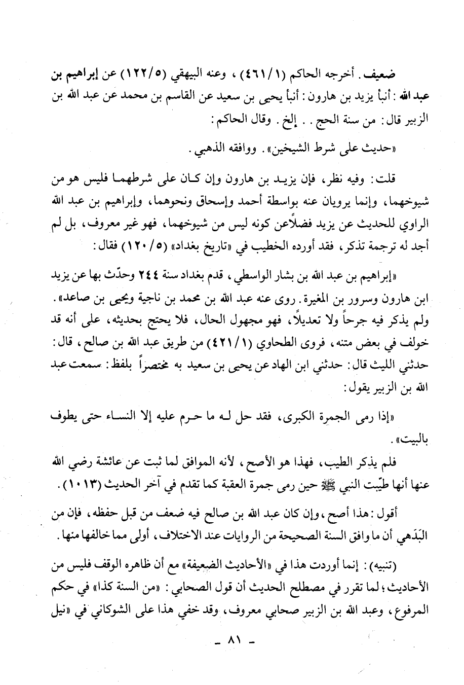 أنبأ يزيد بن هارون: أنبأ يحيى بن سعيد عن القاسم بن محمد عن عبد الله بن الزبير قال: من سنة الحج.. إلخ، وقال الحاكم: