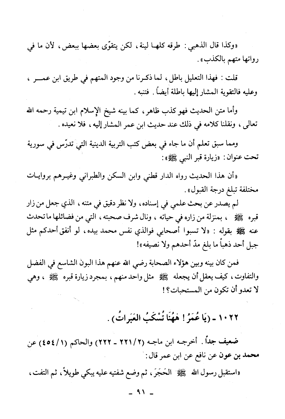 ومما سبق تعلم أن ما جاء في بعض كتب التربية الدينية التي تدرس في سورية تحت عنوان: زيارة قبر النبي صلى الله عليه وسلم: أن هذا الحديث رواه الدارقطني وابن السكن والطبراني وغيرهم بروايات مختلفة تبلغ درجة القبول، لم يصدر عن بحث علمي في إسناده، ولا نظر دقيق في متنه، الذي جعل من زار قبره صلى الله عليه وسلم، بمنزلة من زاره في حياته، ونال شرف صحبته، التي من فضائلها ما تحدث عنه صلى الله عليه وسلم بقوله: