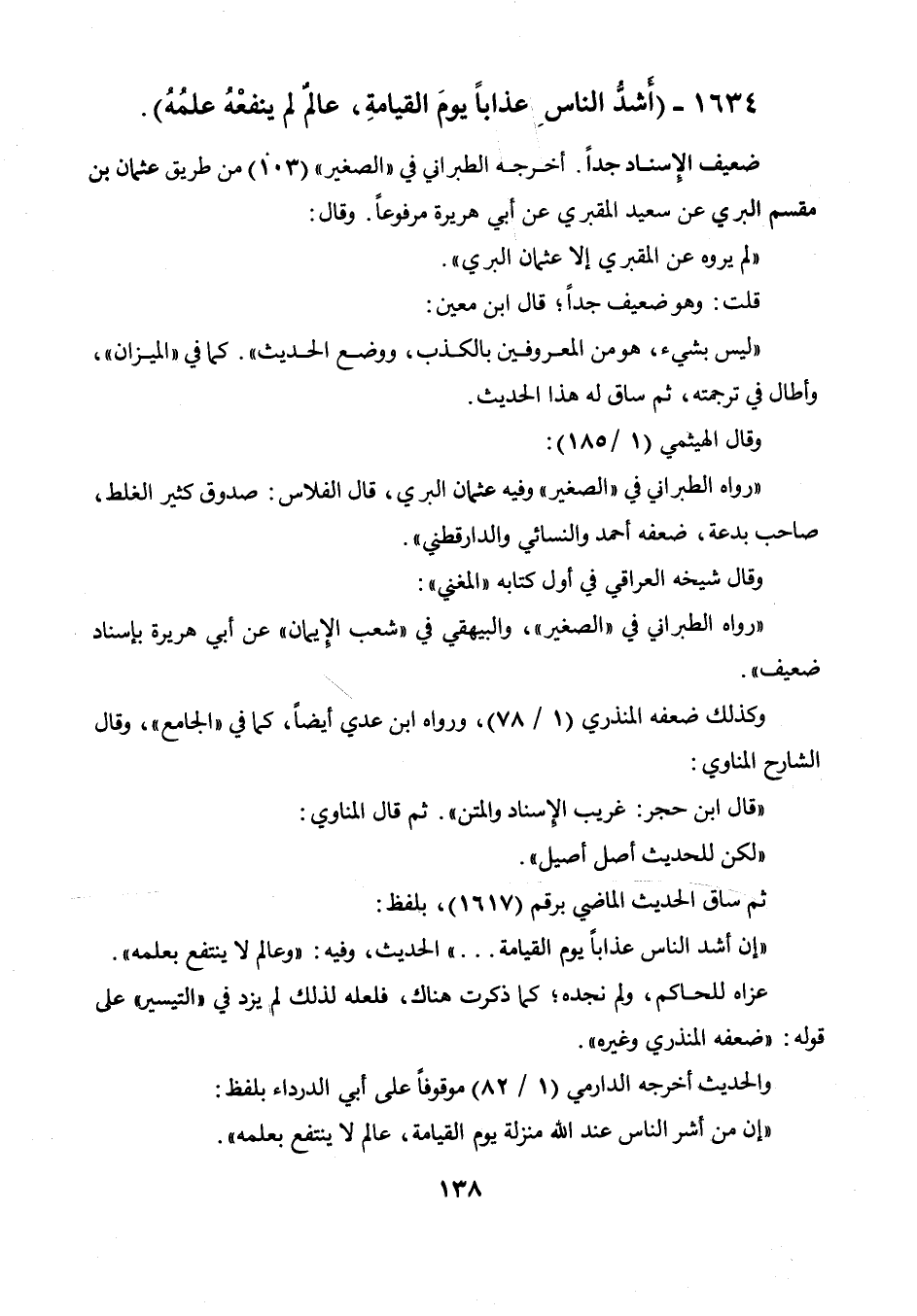 1634 - " أشد الناس عذابا يوم القيامة، عالم لم ينفعه علمه ".