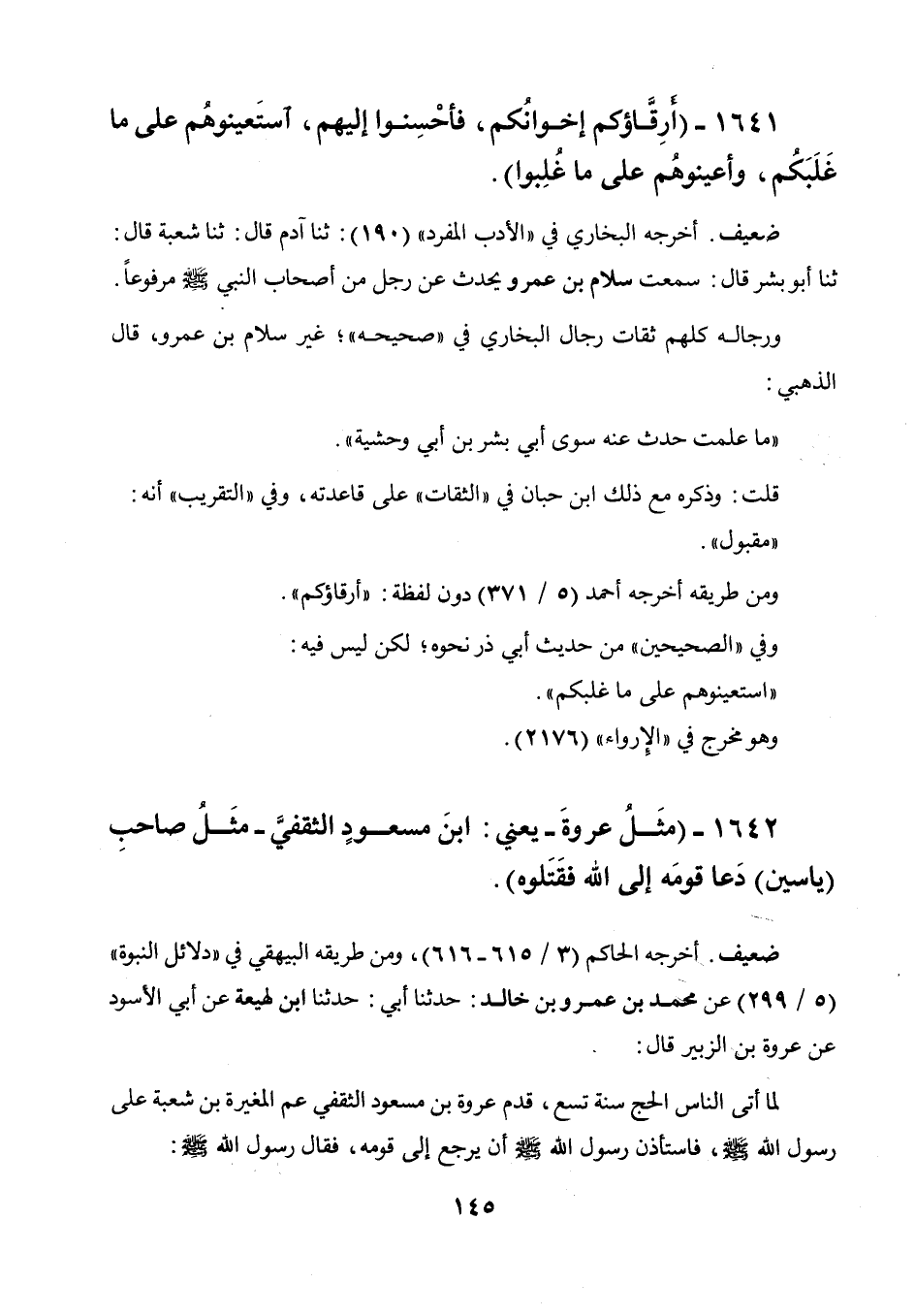 1641 - " أرقاؤكم إخوانكم، فأحسنوا إليهم، استعينوهم على ما غلبكم، وأعينوهم على ما غلبوا ".