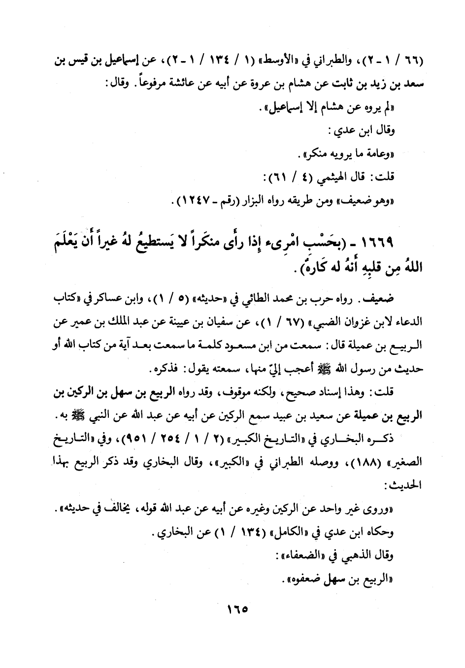 1669 - " بحسب امرىء إذا رأى منكرا لا يستطيع له غيرا أن يعلم الله من قلبه أنه له كاره ".