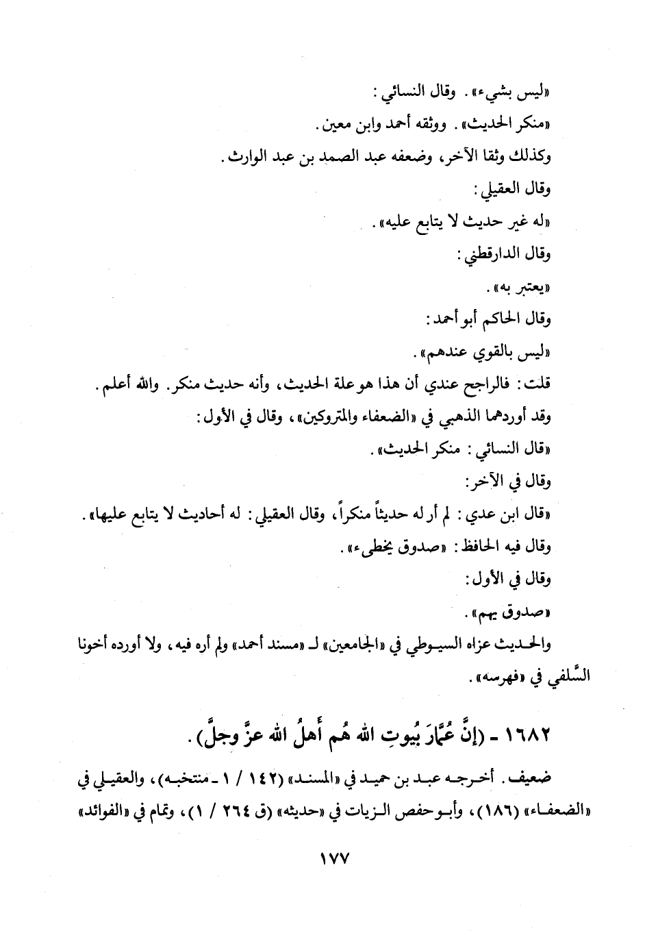 " ليس بشيء ". وقال النسائي: " منكر الحديث ". ووثقه أحمد وابن معين. وكذلك وثقا الآخر، وضعفه عبد الصمد بن عبد الوارث.
