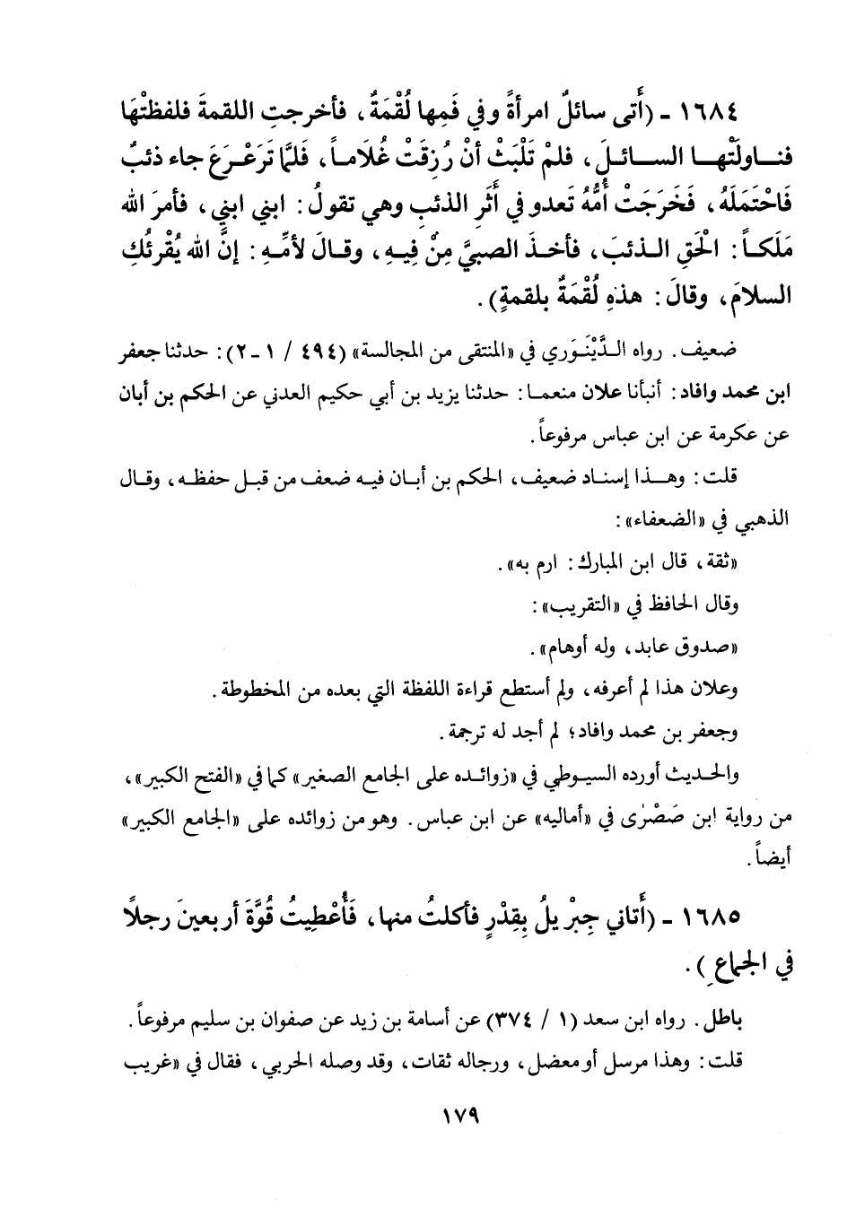 1685 - " أتاني جبريل بقدر فأكلت منها، فأعطيت قوة أربعين رجلا في الجماع ".