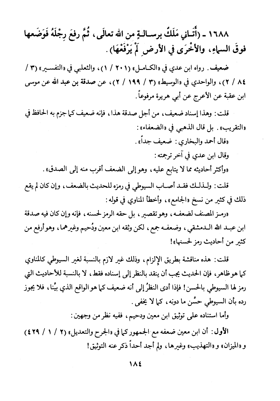 1688 - " أتاني ملك برسالة من الله تعالى، ثم رفع رجله فوضعها فوق السماء، والأخرى في الأرض لم يرفعها ".