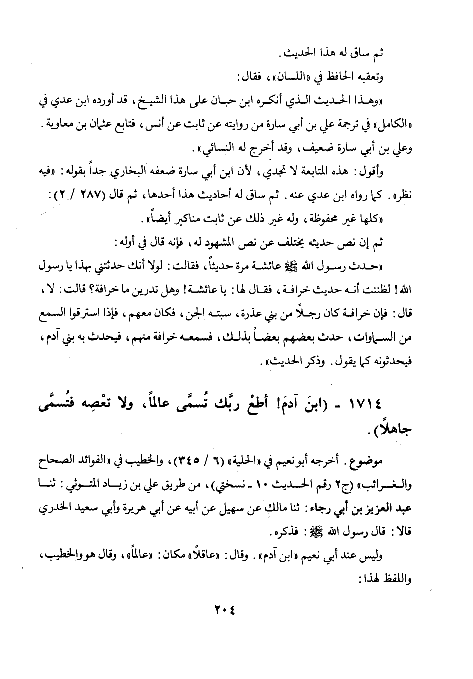 1714 - " ابن آدم أطع ربك تسمى عالما، ولا تعصه فتسمى جاهلا ".