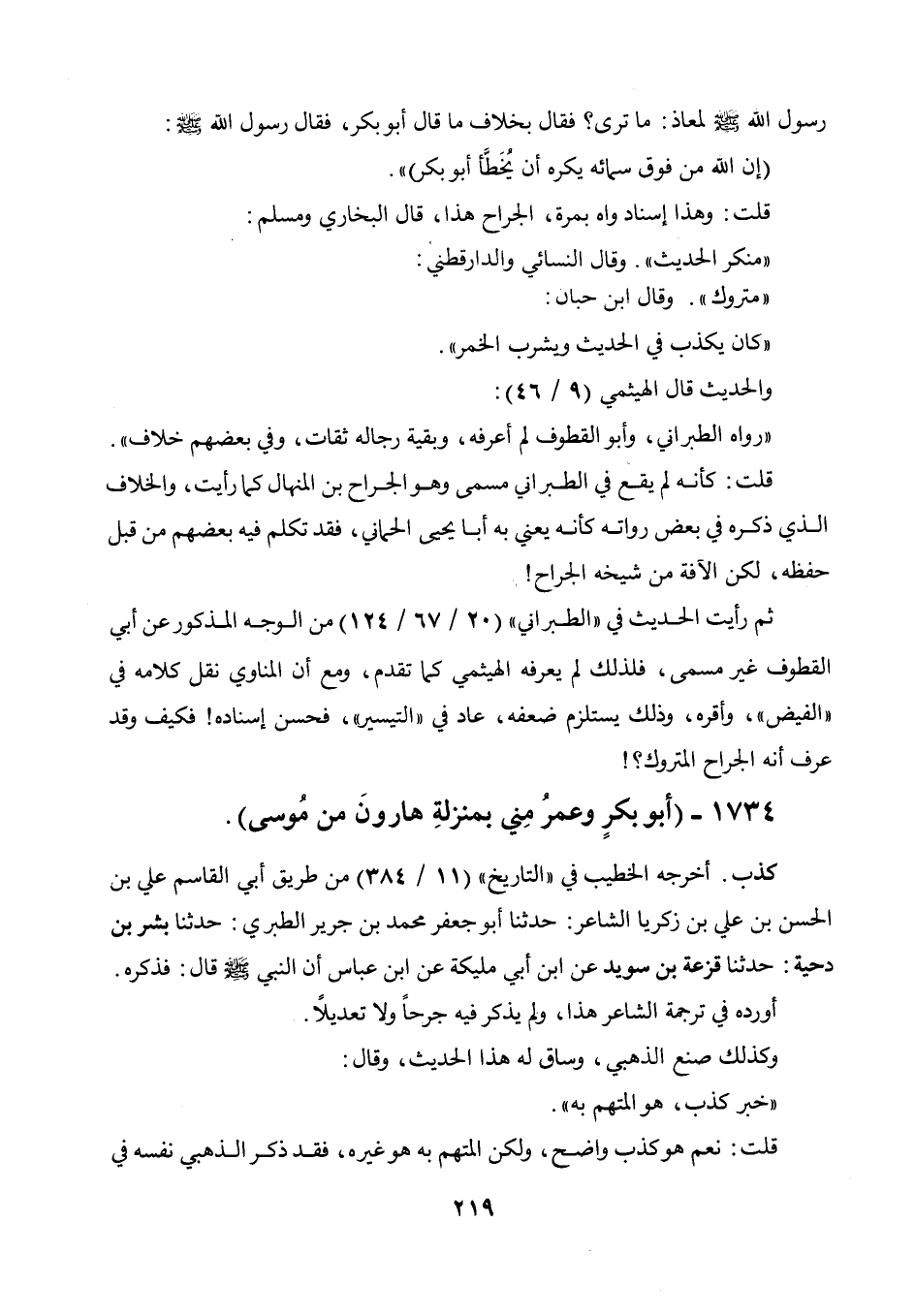 1734 - " أبو بكر وعمر مني بمنزلة هارون من موسى ".