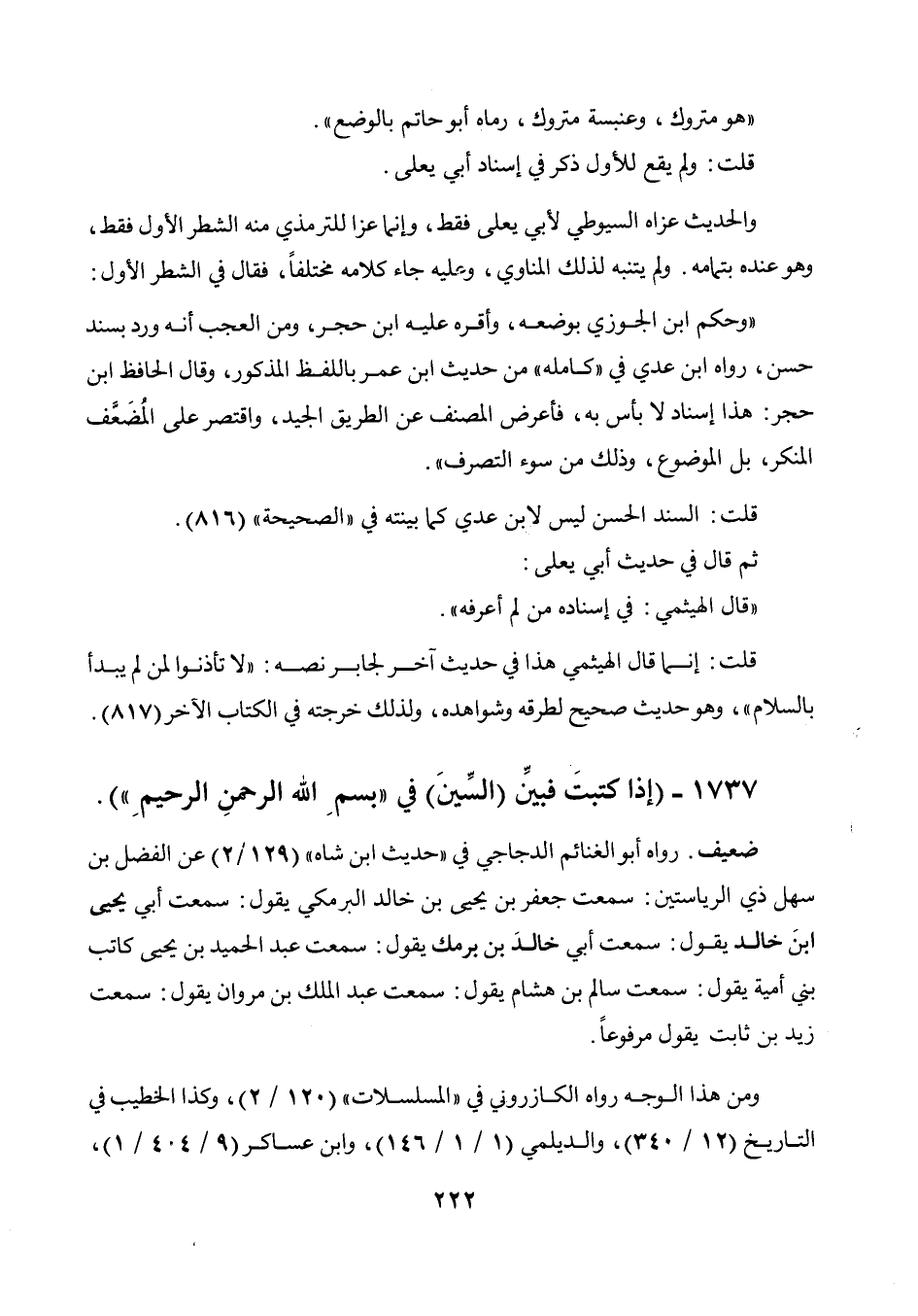 1737 - " إذا كتبت فبين (السين) في " بسم الله الرحمن الرحيم " ".