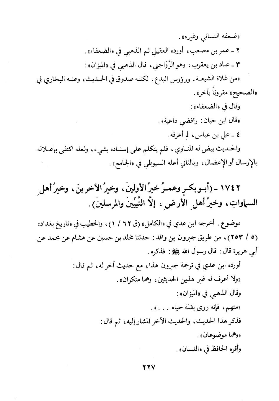 1742 - " أبو بكر وعمر خير الأولين وخير الآخرين وخير أهل السماوات وخير أهل الأرض، إلا النبيين والمرسلين ".