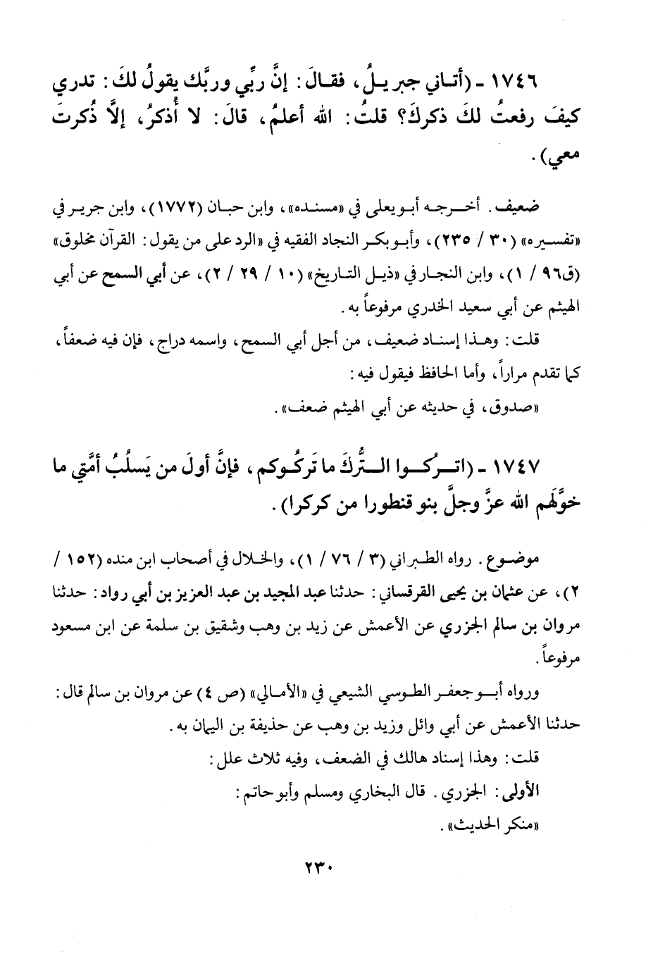 رواه الطبراني (3 / 76 / 1) والخلال في أصحاب ابن منده (152 / 2) عن عثمان بن يحيى القرقساني: حدثنا عبد المجيد بن عبد العزيز بن أبي رواد حدثنا مروان بن سالم الجزري عن الأعمش عن زيد بن وهب وشقيق بن سلمة عن ابن