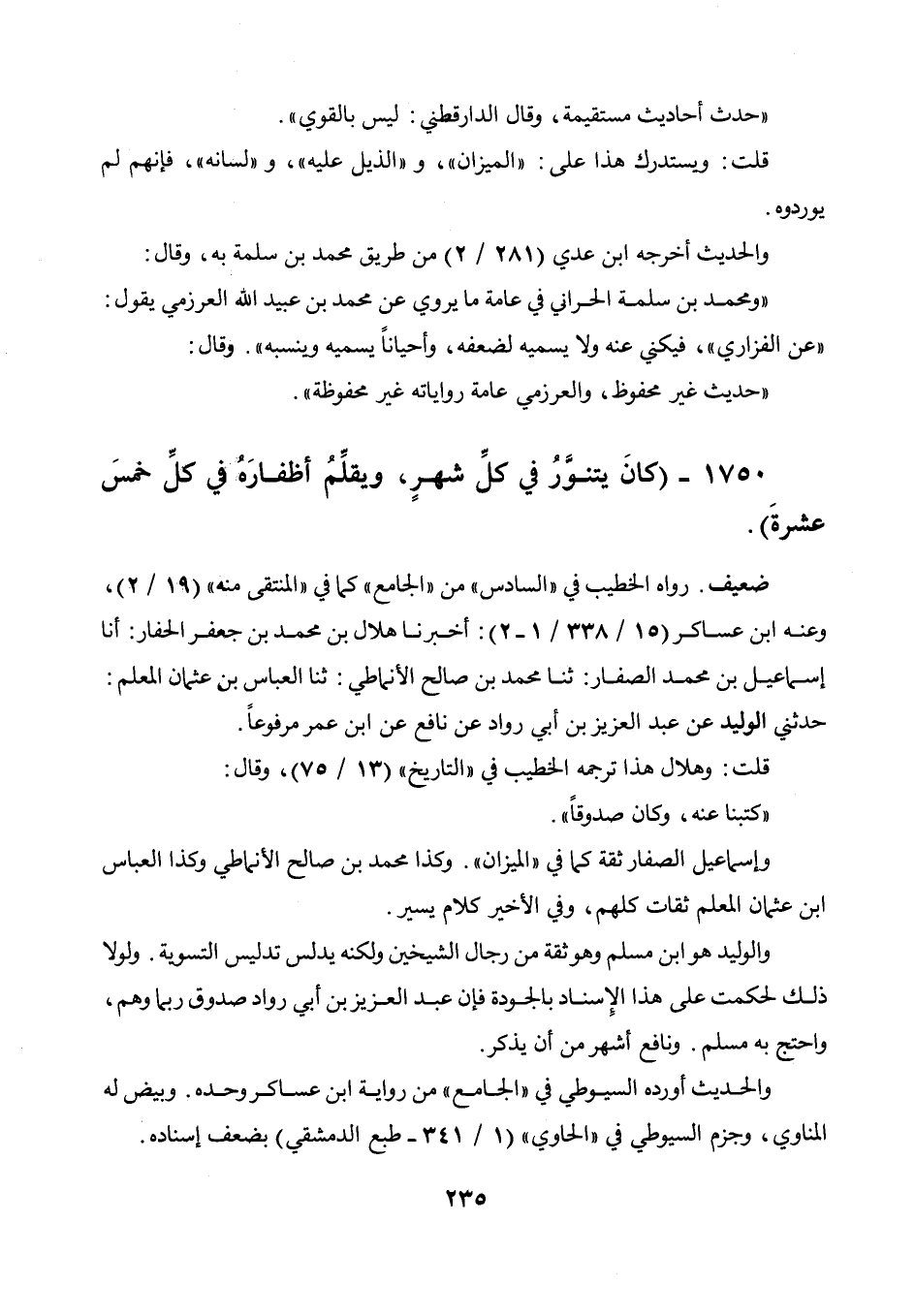 " حدث أحاديث مستقيمة، وقال الدارقطني: ليس بالقوي ". قلت: ويستدرك هذا على: " الميزان "، و" الذيل عليه "، و" لسانه "، فإنهم لم يوردوه. والحديث أخرجه ابن عدي (281 / 2) من طريق محمد بن سلمة به، وقال: " ومحمد بن سلمة الحراني في عامة ما يروي عن محمد بن عبيد الله العرزمي يقول: " عن الفزاري "، فيكني عنه ولا يسميه لضعفه، وأحيانا يسميه وينسبه ". وقال: " حديث غير محفوظ، والعرزمي عامة رواياته غير محفوظة ".