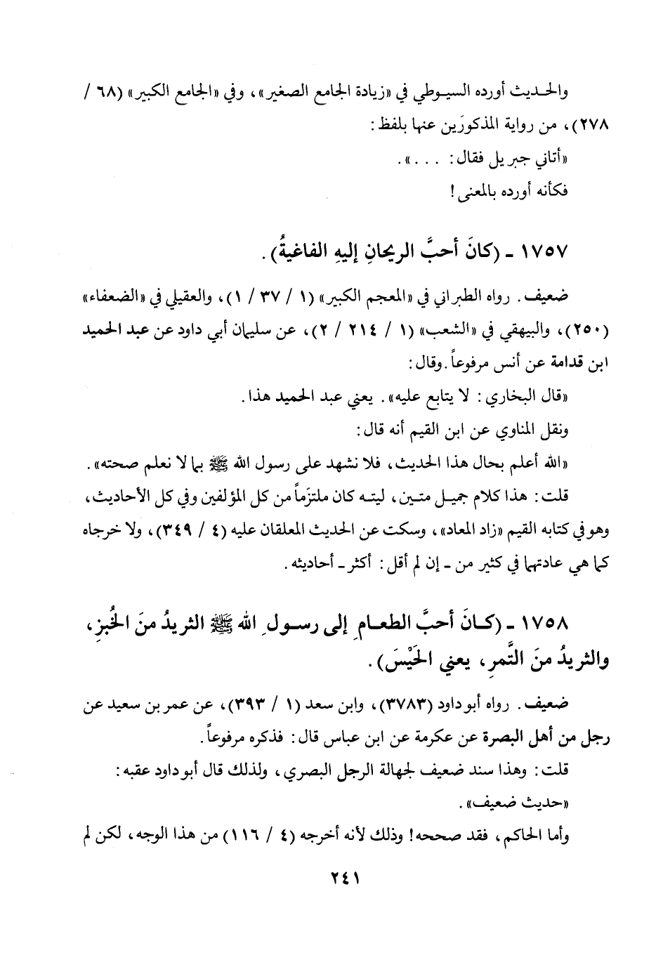 1758 - " كان أحب الطعام إلى رسول الله صلى الله عليه وسلم الثريد من الخبز، والثريد